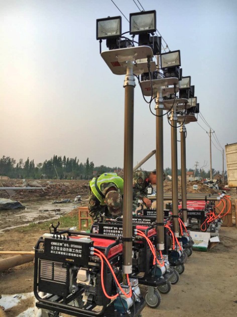 根據災區實際需求,緊急籌備遙控升降式照明裝置、手電筒等應急物資照明設備,第一時間趕往阜寧,深夜到達災區,由現場工作人員指導并安裝救援的照明裝置,為災區早日亮起希望之燈。